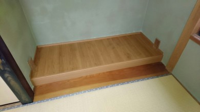 お客様のご要望に沿い将来のことを考えて、ビス固定をしない床を造作させていただきました。イメージ通りに仕上がりお客様にとても喜ばれました。これからもお気軽にお声掛けいただけたらと思います。ありがとうございました。