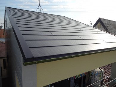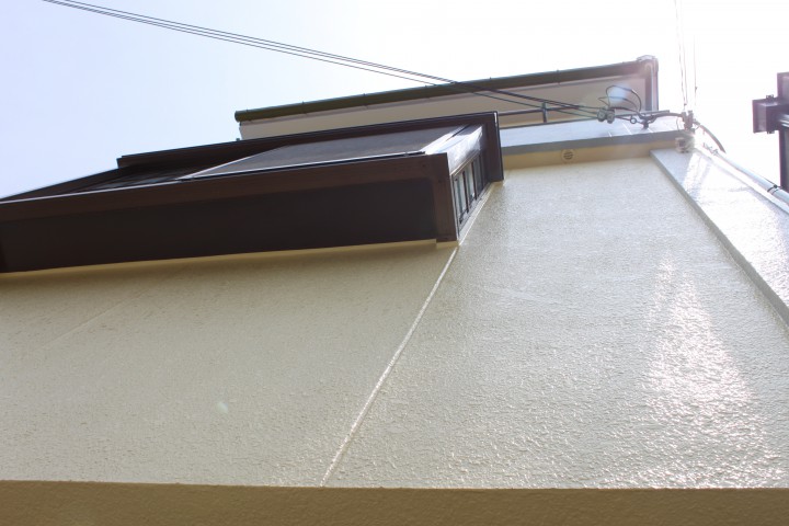 高耐久仕様をご要望でしたので、超高耐久塗料である「スーパームキコート」をご提案致しました。弊社で最も実績の多い塗料で、汚れ・色褪せに大変強い無機成分と、ひび割れ追従力のある有機成分の融合により、長期間の美観維持を実現させる事が可能です。また、屋根にはニチハの「横暖ルーフプレミアムS」にてカバー工法をご提案致しました。こちらは表面にフッ素樹脂加工が施された、断熱材一体型の金属屋根材で、紫外線の影響を強く受ける過酷な環境下ではもってこいの超耐久商材です!