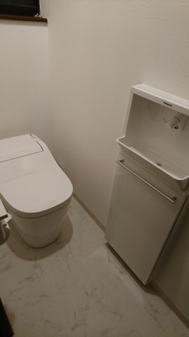 T様邸のご採用いただいたトイレはPanasonic アラウーノSⅡ アラウーノ専用手洗い器 になります。スッキリとした明るい空間をご希望とのことでしたので、タンクレスのトイレに合せて白を基調とした明るい内装をご提案させていただきました。お掃除面も、泡で洗浄できるアラウーノSⅡをいれさせていただきましたので、以前よりも楽にお掃除していただけるのではないかと思います。