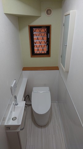 トイレリフォーム工事後のご感想で「仕上がり良く、満足しています」とのお声をいただき