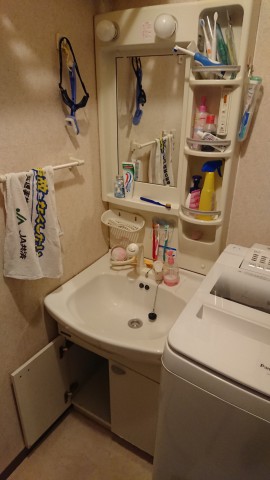 洗面化粧台を十数年お使いのところ、水漏れが気になるということで、ご来店いただきました。