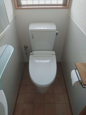 これからトイレをより快適にご使用していただけるように、トイレの交換リフォーム・腰壁にパネルの設置、床の張替えリフォームをご提案させていただきました。