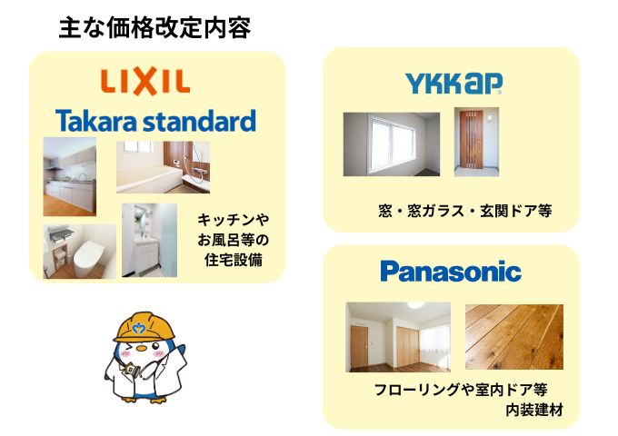 主要メーカー各社から製品価格の改定(値上げ)が発表されています。